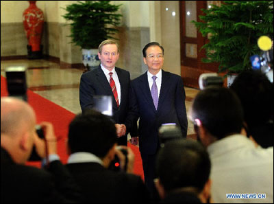 Tijekom razgovora s irskim premijerom Enda Kennyjem koji boravi u posjetu u Pekingu, premijer Wen Jiabao pozvao je dvije strane na unaprjeđenje bilateralne razmjene i suradnje u svim područjima, na korist oba naroda.