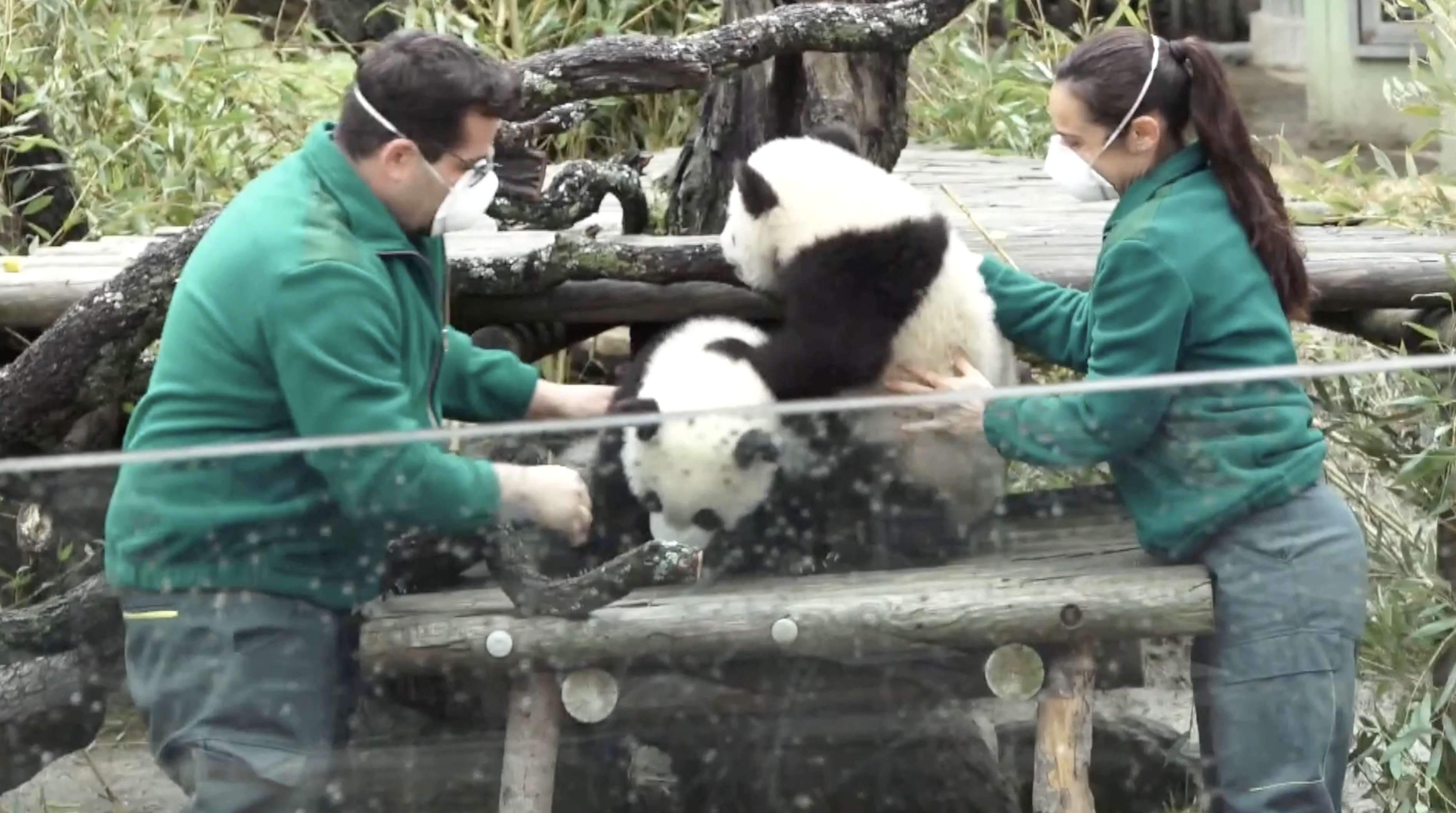 Blizanci mladunci divovske pande prvi put se pojavili u javnosti u zoološkom vrtu u Madridu