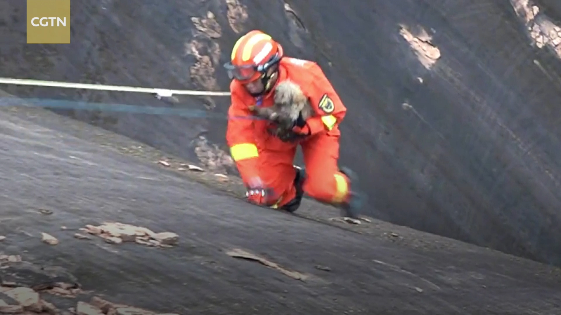 Vatrogasci spasili psa zarobljenog na litici u središnjoj Kini